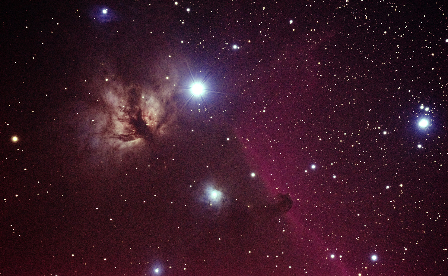 The Flame Nebula & Horse Head Nebula and a chopped off Pleades!.