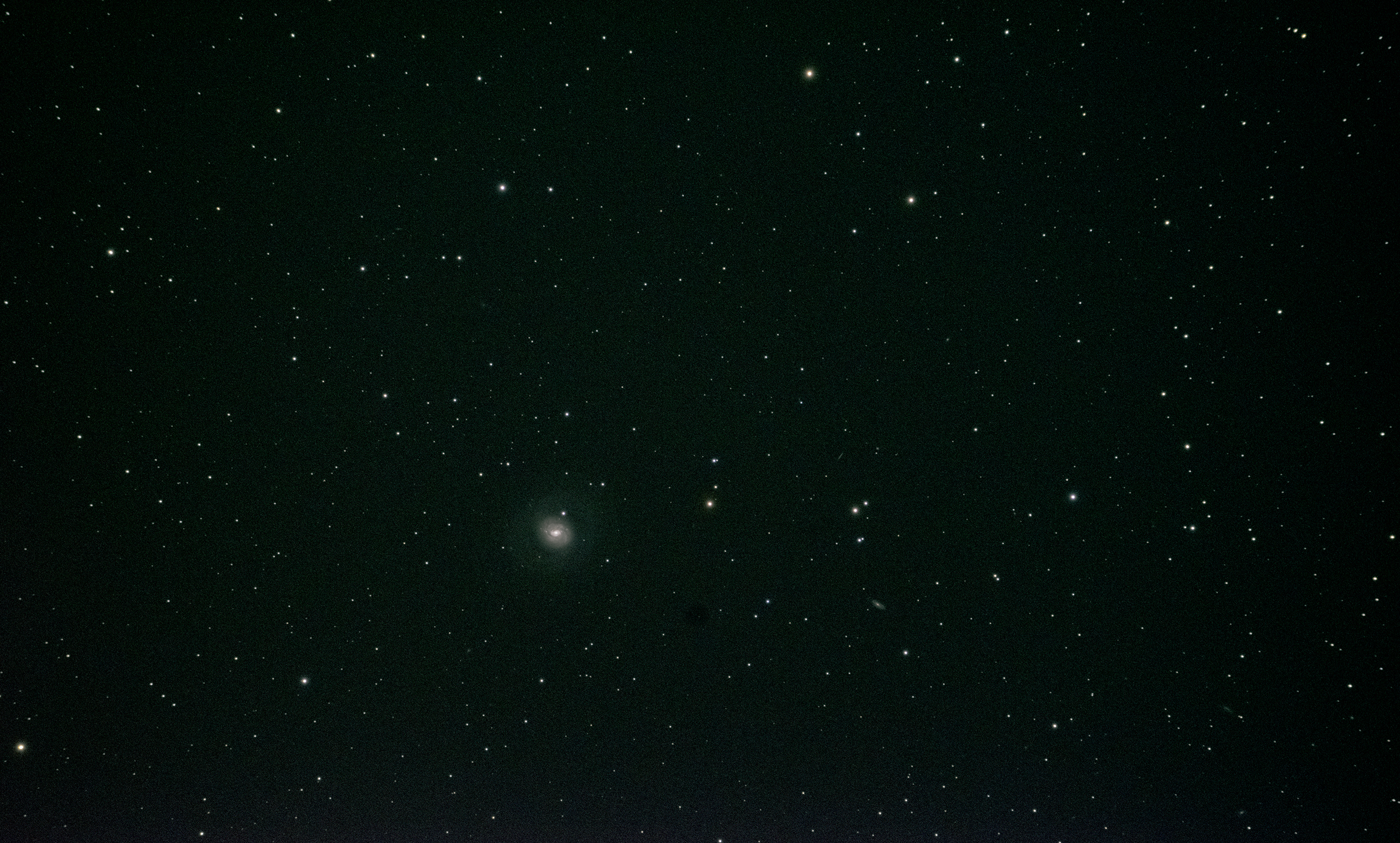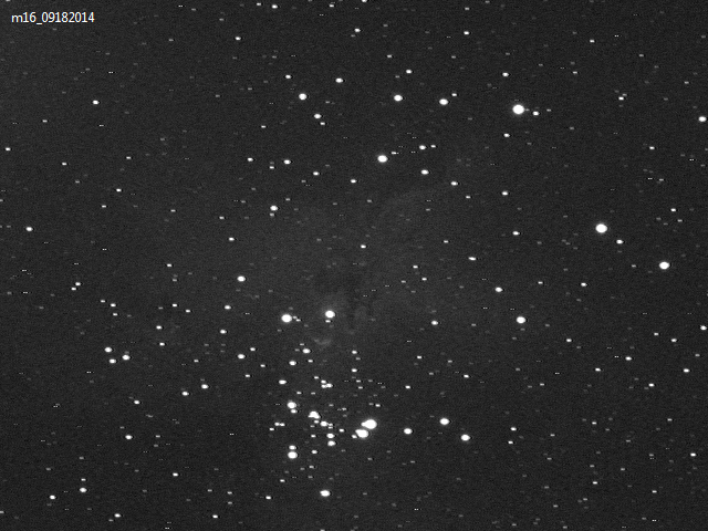 This was taken October 18, 2015, in my backyard between the trees. Couldn’t get the autoguider to work so stacked a few 30 second exposures iso 400. Used Gimp to clean up a dust bunny! Orion Atlas EQ-G, FS102 Takahashi and a friend’s Nikon.