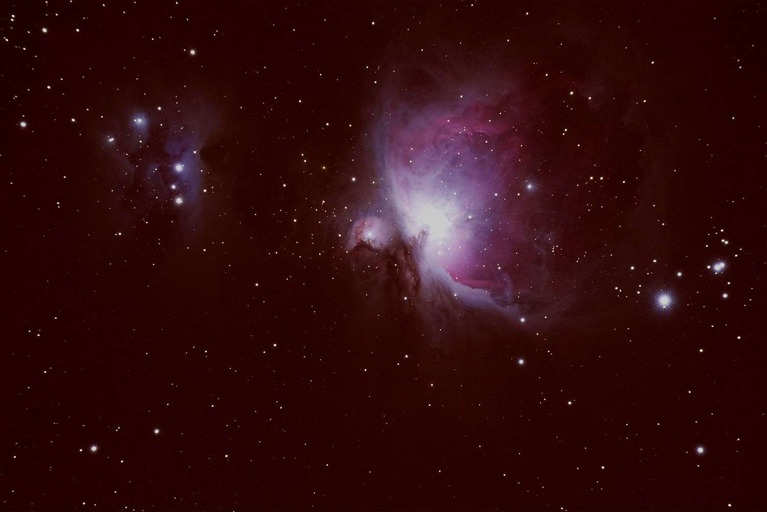 Some pics from January 4th and 5th, 2016, Orion Atlas EQ-G, FS102 Takahashi, Orion Magnificent Mini AutoGuider Package and a friend’s Nikon D5300. Images were stacked using Nebulosity4. Post processed with Photoshop. Seeing wasn’t nearly as good as our November outing. Wasn’t sure about iso’s, duration or quantity of shots. Used ISO 1250 average captures 60-90 seconds x 20 . Looking back I think a lower ISO possibly 800, longer capture time possibly 2 or 3 minutes, and more captures 30? Here they are…please excuse the amp glow on some of them ( I cropped it out on a few).